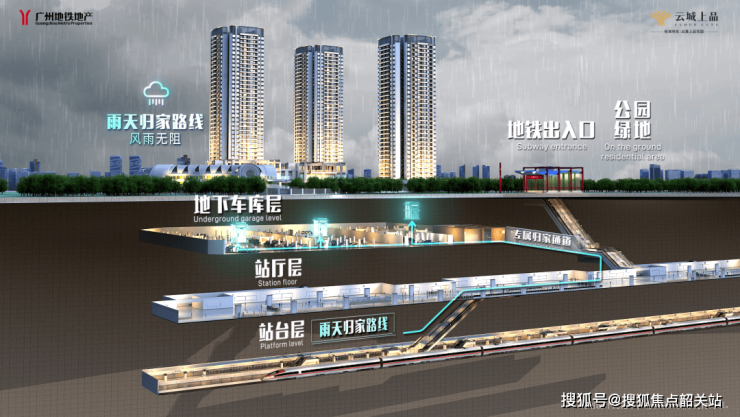广州地铁·云城上品不仅仅是简单的“地铁接驳盘”,而是真正实现了TOD(Transit-Oriented Development,以公共交通为导向的开发)模式的深度整合。