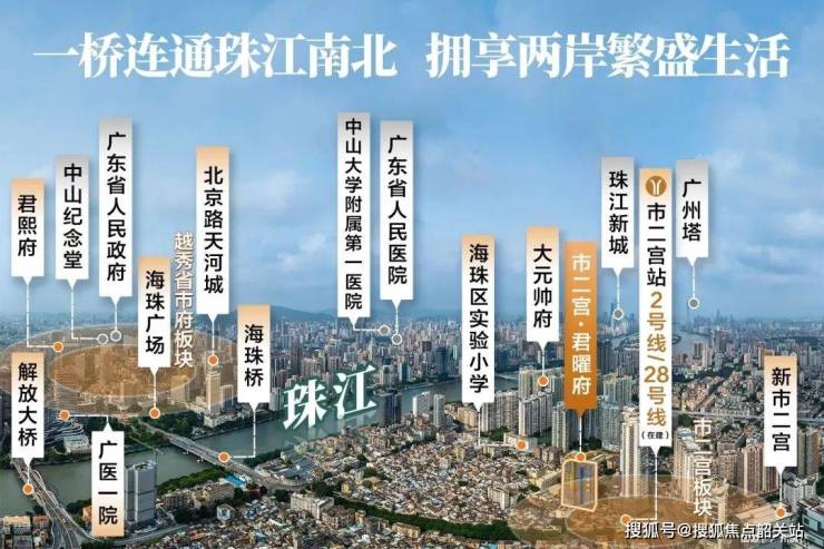 市二宫板块,作为广州千年中轴与珠江前航道的交汇点,是海珠区最早成熟的板块之一。早在十三行时期,这里就凭借临江、港口优势,成为广州的经济中心,中外贸易往来频繁,富贾云集。如今,它更是广州第一中轴南拓首站,延续着中轴正脉之尊贵,传承着广府文化之厚度。未来,板块将立足“滨江岭南文化商圈”与“海珠新活力文商旅融合圈”,推动产城协同发展,焕发老城新活力,有望成为湾区战略创新极核,引领区域发展新高度。