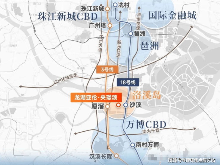 龙湖亚伦央璟颂周边交通便利,步行距离内有地铁3号线和18号线沙溪站,距离约为790米,步行约需12分钟。通过地铁18号线,居民可以一站到达万博商圈,两站到达琶洲,三站到达珠江新城。自驾出行也非常方便,出门即是新光快速,附近还有华南快速,可迅速抵达各大核心区域。