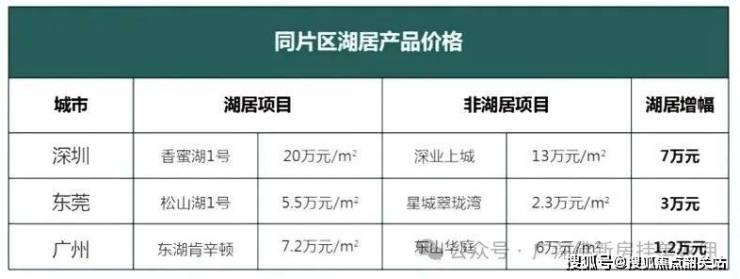 城市湖居极其珍稀,从广州的麓湖、深圳香蜜湖、东莞的松山湖来看,湖居都是富人住的地方,湖景房溢价比同区位其他住宅高出50%是十分常见的情况。