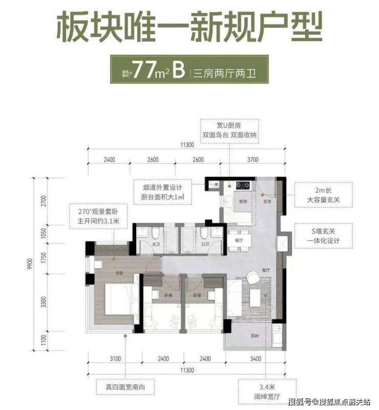77平方米两房一厅:紧凑实用,功能齐全,非常适合首次置业的年轻人。