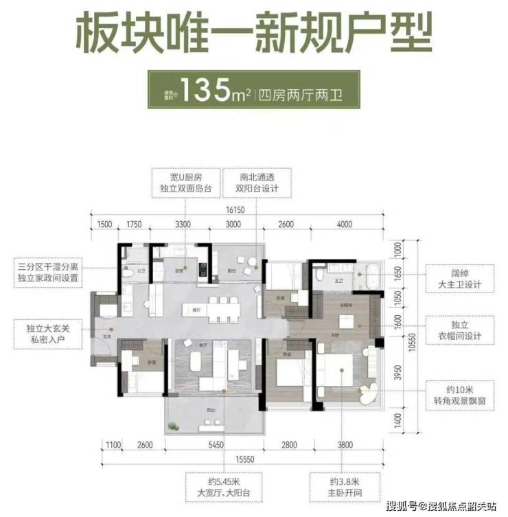 135平方米四房两厅:豪华大气,主卧带独立卫生间,适合大家庭或改善型购房者。