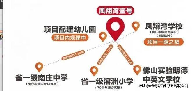 凤翔湾壹号业主子女可享受从幼儿园到中学的省一级优质教育资源。项目附近有溶州幼儿园、上元幼儿园,社区内规划有 12 班凤翔湾幼儿园(公办)。参考 2024 年学校分配,业主子女可分配到广东省一级学校溶洲小学(1951 年创办,70 余年师资沉淀,德育优秀学校),以及省一级南庄中学(初中部,1959 年创办,2008 - 2021 年连续 14 年禅城中考成绩第一,获多项荣誉,也是全国机器人进课堂实验基地)。此外,还有育贤学校、佛山实验明德中英文学校可供选择,项目一路之隔还规划有 42 班的公办九年一贯制凤翔湾学校(南庄中学附属学校,已通过环评)。售楼处电话:4009909752 。