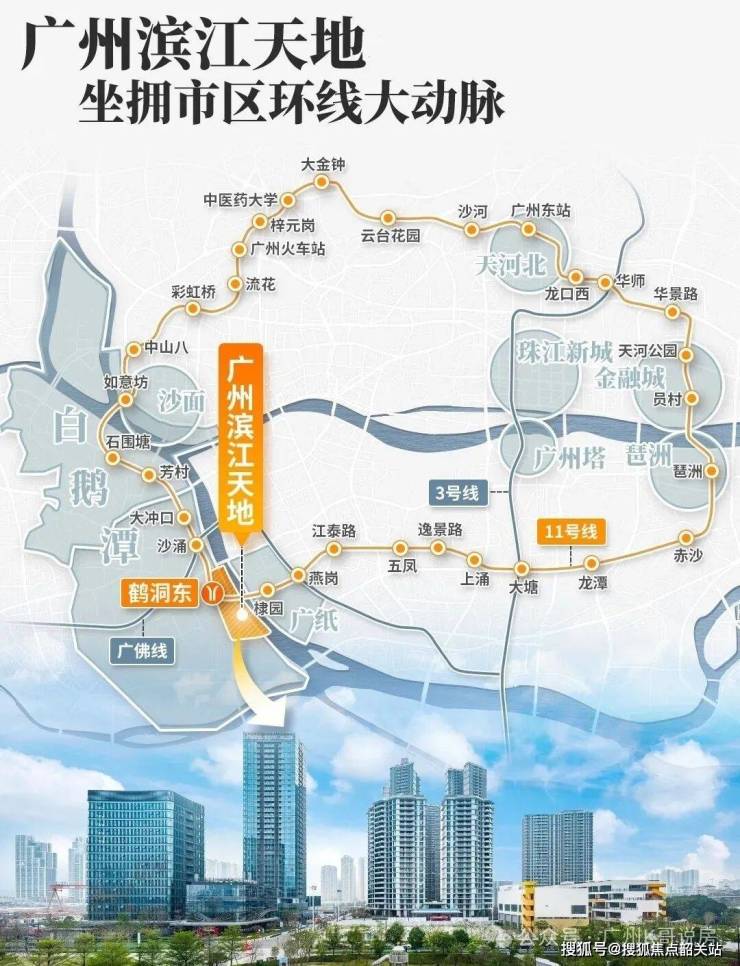 项目门口的地铁11号线鹤洞东站,距离项目直线距离不到200米,规划中的佛山地铁11号线也紧挨项目南侧设站,通过广州首条环线11号线,可以速连珠金琶CBD,也可以在大湾区艺术中心,邂逅艺术的灵感,或漫步老西关永庆坊,感受百年烟火气...