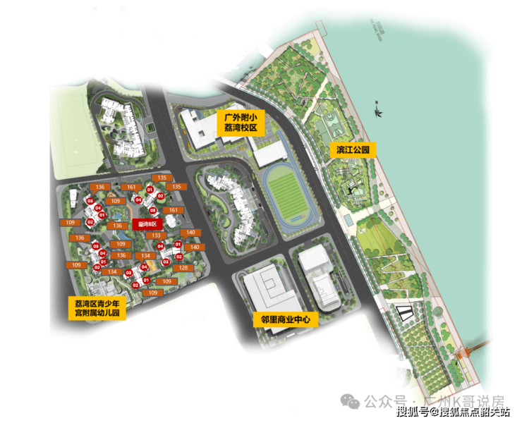 广州滨江天地总共规划了2所幼儿园,2所小学。