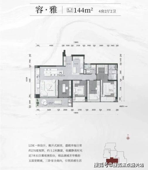 结构以四房为主,适合多人口家庭,空间分布强调公共空间的通透感与卧室私密性。