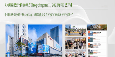 项目紧邻10万平方米的高端Shopping mall——中国铁建南沙环宇城,已于2023年9月开业,并在同年10月荣获大众点评榜“广州商场好评榜第一”的称号。这里汇聚了众多国际知名品牌和美食餐厅,满足居民的购物和休闲需求。