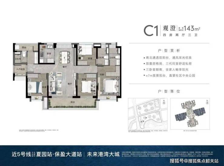 约123㎡南向4房,约143㎡南向4房,约93㎡北向3房。