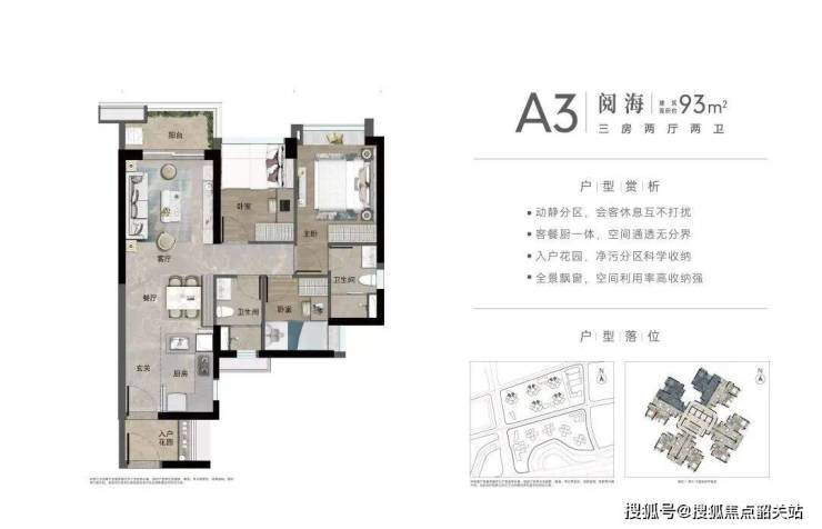 约93㎡南向3房,约93㎡北向3房。