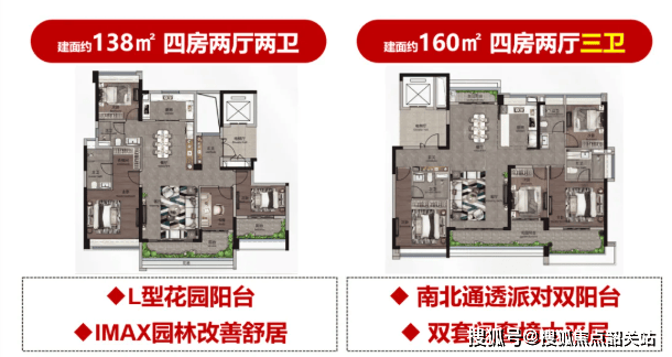 138㎡四房二卫户型:这是项目的明星户型之一。南北对流的设计,使得通风采光效果更佳。方正实用的灵动格局,为居住者提供了更多的想象空间。极高的窗地比,让人北瞰山湖、南望园林,阳光充足。四面朝南的罕见设计,更是让阳光溢满生活的每一个角落,提升了居住的舒适度。