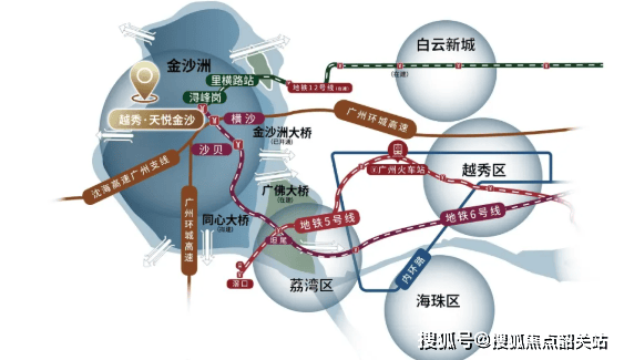 在道路交通方面,项目通过金沙洲大桥可快速上内环,直达越秀区;三站地铁即可到达荔湾区,15分钟通达市中心,真正实现了成熟宜居新城的生活愿景。