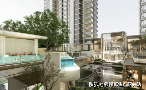项目引入大石板块首个酒店式会所概念,外立面采用大面积玻璃幕墙,内部规划悬浮式泳池、室内篮球场、瑜伽室及多功能会客区。归家动线从双首层抬高的门楼开始,水景端景与弧形立柱营造度假氛围。园林设计结合岭南元素,利用约2500㎡市政防护绿地形成天然隔音屏障,同时在社区内部打造多层次绿化体系,儿童活动区、慢跑道、休憩平台等功能节点穿插其间,满足全龄段日常活动需求。