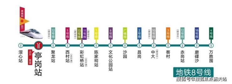 距地铁8号线亭岗站B出口直线距离仅约200米,沿线12个换乘站无缝接驳13条地铁线路(含在建中),8站到荔湾、9站到越秀、11站到海珠、14站到天河等城区。