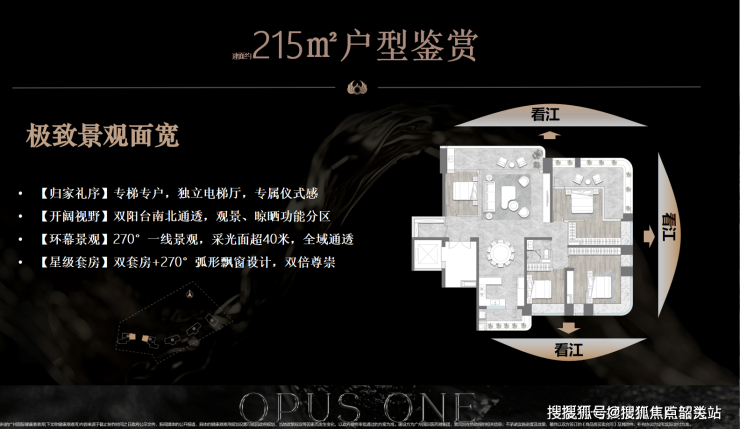 210㎡四房:双套间设计,客厅开间6米(可拓展至8米),270°环幕江景;