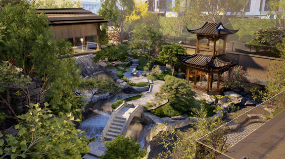 项目园林以“一环两轴八景九境”格局打造,融合岭南文化元素与现代设计理念,营造出一幅东方山水意境画卷。无论是归家动线上的三重体系,还是园林中的多重景观节点,都体现了对传统文化的深刻理解和尊重。项目还斥巨资打造下沉式庭院会所,集社交与休闲功能于一体,为业主提供了一个高品质的生活空间。