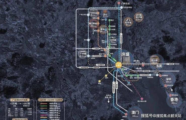 庆盛枢纽拥有广深港高铁和未来规划中的广中珠澳高铁,能够快速到达深圳北、香港西九龙等地。此外,四条地铁线(4号线、22号线、31号线、33号线)交汇于此,使得出行更加便捷。项目还专门打造了一条超级连廊,连接了居住地块、产研地块、香港科技大学(广州)、河涌公园、街心公园以及东涌地铁站等,提供了安全、便捷的步行体验。