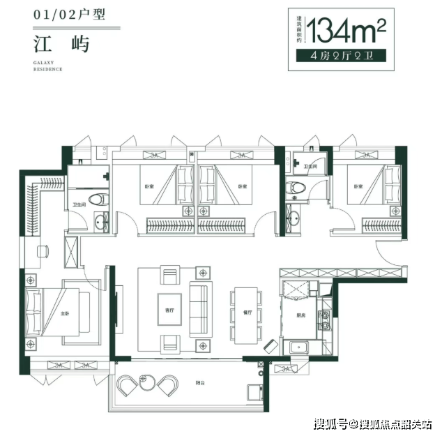 而134平方米的四房两厅两卫户型,则更适合追求更大空间的改善型家庭。该户型采用了超开阔的横厅设计,将客厅、餐厅、阳台融为一体,营造出宽敞明亮的公共活动空间。约6.8米的巨幕阳台,堪比IMAX电影屏幕,让人仿佛置身于画中游。豪华主卧套间,典藏一方天地,细节之处尽显奢华。每个房间都经过精心推敲,尺寸合理,功能分区明确,既保证了居住的舒适性,又兼顾了美观性。