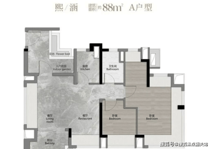 A:88㎡三房得房率125%,主卧270°环幕飘窗,双阳台设计,实得面积超110㎡,完全满足三口之家需求。