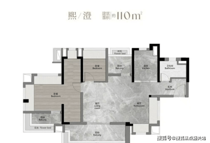 110㎡南北通透三房:双面宽阳台,一侧家政空间,一侧休闲区,满足多场景需求。