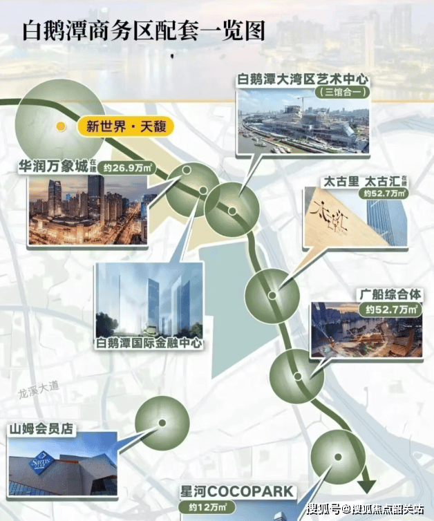 项目自带约4.3万㎡的社区商业,满足居民日常生活需求。附近还有全国规模最大的万象城(已于2023年6月开工,预计2026年正式营业)、太古汇购物中心以及太古里滨水街区(2022年9月动工,2027年营业),为居民提供更多样化的购物娱乐选择。