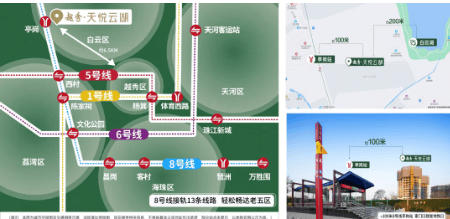 越秀·天悦云湖位于广州市白云区西部的白云湖西湖片区,距离8号线亭岗站仅200米,交通极为便利。通过8号线,可快速到达老荔湾、海珠西、客村、琶洲等地,并可通过多个换乘站点连接至全市各地。此外,项目周边有三高速环绕,便于接驳至天河、海珠、荔湾等区域,同时邻近白云站TOD大型交通枢纽,进一步增强了出行的便捷性。