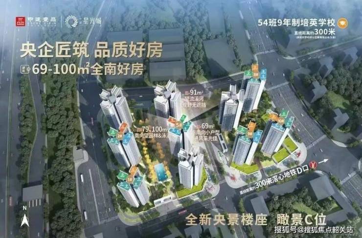 中建星光城采用了独特的蝶形设计,通过南低北高以及点式布局,实现了100%全南向的设计,提升了空间的通透性。最小户型仅需160万元即可购买,性价比高,对于首次购房者来说是一个不错的选择。部分户型还做到了南北通透,多面宽朝南,增加了居住的舒适度。