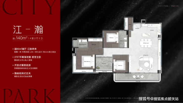 在售户型:120㎡和140㎡,梯户比为2梯2户,容积率为3.0,确保每户都能享受到舒适的空间。