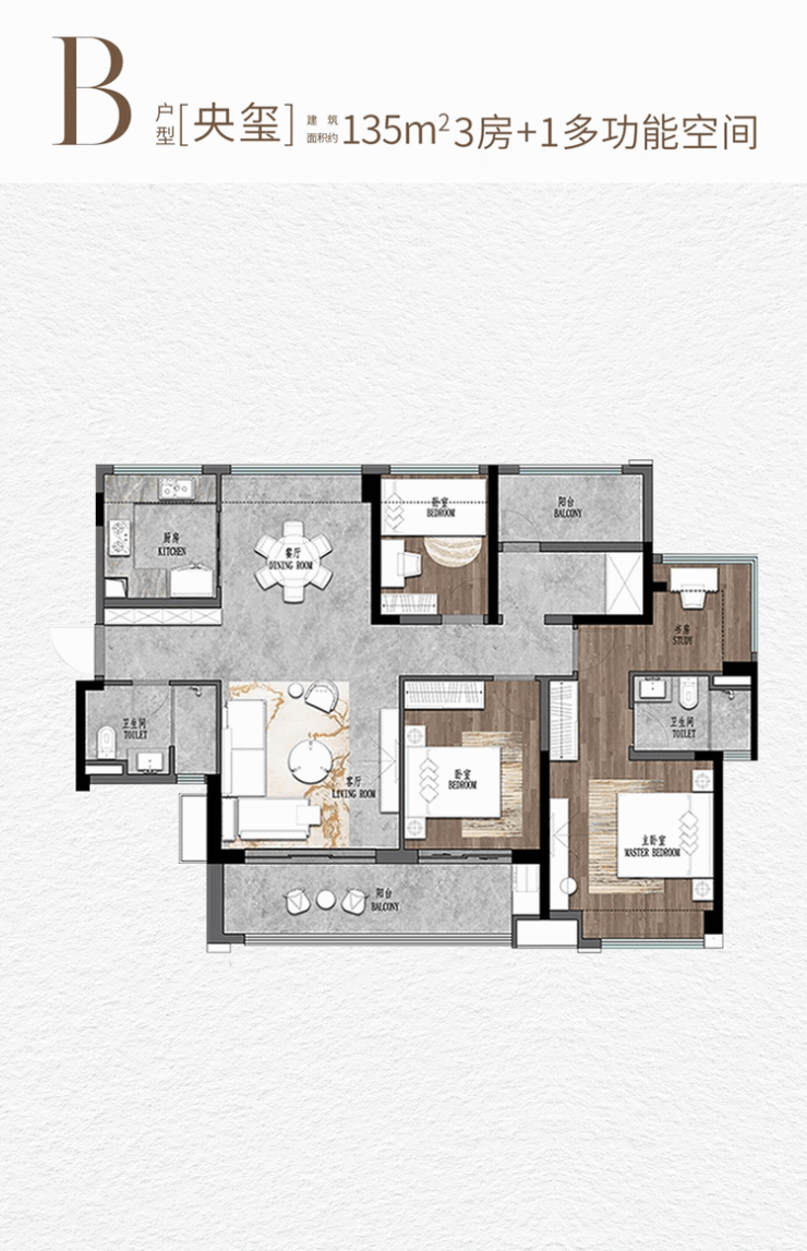 美的东樾湾主打约85-125㎡的装修交标户型,专为城市精英定制。