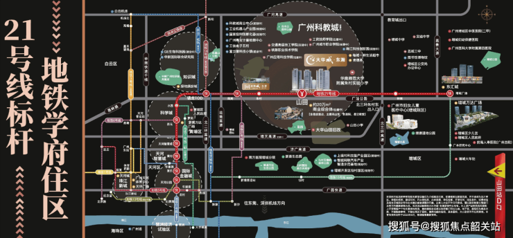 大华城东瀚最显著的地理特征在于其与地铁21号线山田站的距离。从项目主出入口步行至山田站D出口,直线距离仅约50米,这意味着居民在日常通勤中几乎可以实现“出门即进站”。乘坐21号线快线,仅需6站即可抵达天河公园站,3站可达黄埔区,这对于在天河智慧城、科学城等产业聚集区工作的上班族而言,极大地压缩了通勤时间。在早高峰时段,通过地铁出行可以避免地面交通拥堵的不确定性。若选择自驾出行,项目门口即是广汕公路,这是一条连接广州东部的重要主干道,向西可直达黄埔和天河核心区。此外,项目距离广州北三环高速朱村出口约1.3公里,未来随着增天高速的建成通车,区域内的路网结构将进一步优化,前往广州北部及周边城市的便捷度将得到提升。值得注意的是,虽然交通便利是巨大优势,但项目前排部分楼栋靠近广汕公路和地上铁轨道,可能会受到一定的交通噪音影响。开发商通过在住宅区与道路之间设置约30米的退距以及建设前广场缓冲带,试图缓解这一问题,但购房者在选房时仍需实地感受不同楼层和朝向的噪音差异,做出理性判断。