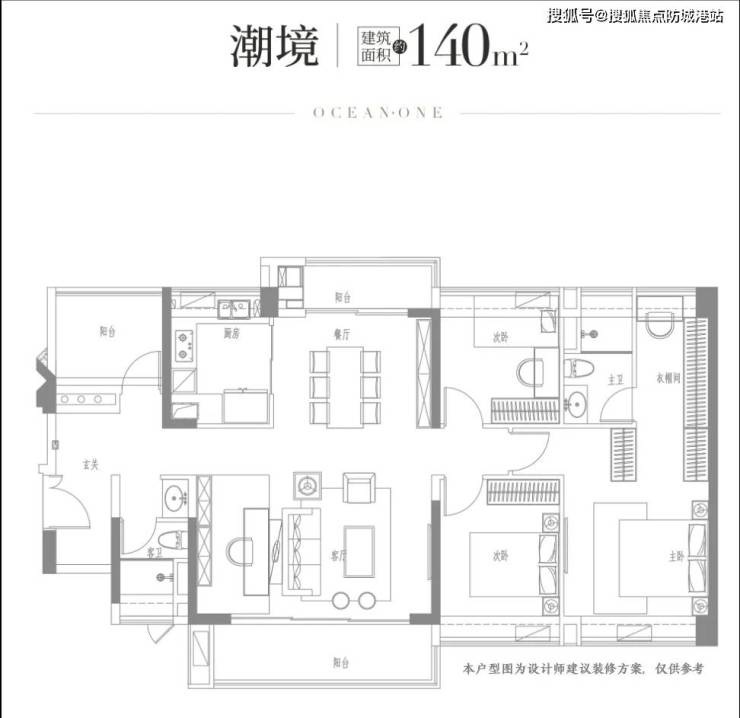 140㎡四房两厅三卫:双套房设计,270°环幕江景,总价448万起。