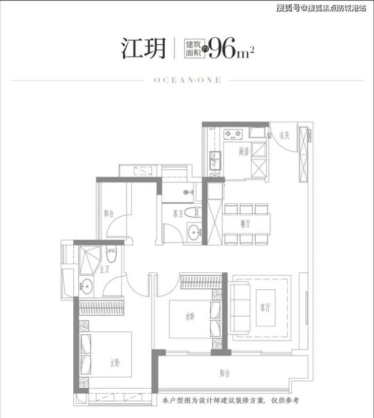 96㎡三房两厅两卫:南北通透,大面宽阳台,总价288万起;