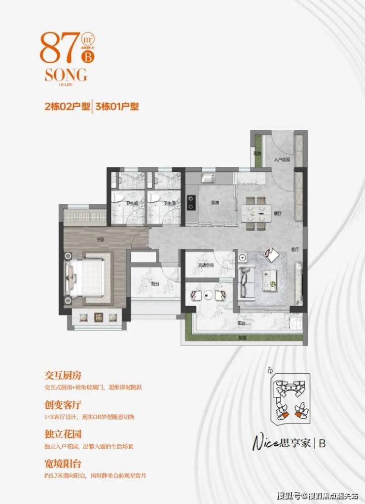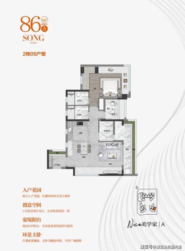 总价低、朝向好、户型靓,是它的卖点,首推建面71-87平三房,现在加推70-100方的三-四房