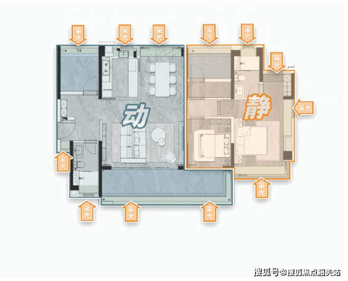 低梯户比:主力户型采用 2 梯 2 户或 2 梯 3 户的梯户比配置,大大减少了等待电梯的时间,提升了出行效率。