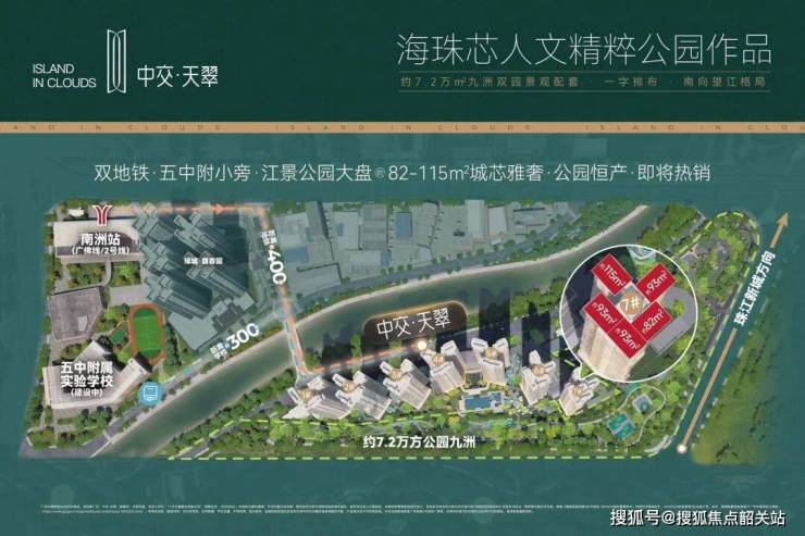 中交·天翠项目位于海珠区南洲街道,紧邻广州大道南与上涌路,总占地面积约X万平方米,总建筑面积约XX万平方米,容积率≤3.5(海珠主城罕见低密),绿地率≥35%。项目共规划多栋高层住宅,总户数约XXX户,车位配比达到1:1.8,充分满足现代家庭的停车需求。目前在售楼栋已建至地上25层以上。