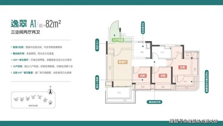 82㎡户型:做到了极致的入门级公园奢宅,三房两卫,是进阶海珠圈层的首选。