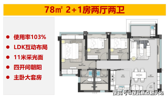项目主推 78-89㎡三房户型,使用率高达 105%,为白云湖唯一新规产品,户型设计亮点纷呈:采用 0.26 窗地比(高于市面 0.21-0.24 标准),采光更充足;蝶形楼栋布局使每户均为单边位,实现南北通透;78㎡北向单位与 89㎡南向单位主卧均朝南,且通过主卧双飘窗实现对流,避开卫生间异味,提升居住舒适度。二期新户型空间利用率进一步优化,89㎡三房做到客餐厅一体化 + 观景阳台,适配小家庭或新婚夫妇,首付 30 万起的低门槛,大幅降低刚需上车压力。