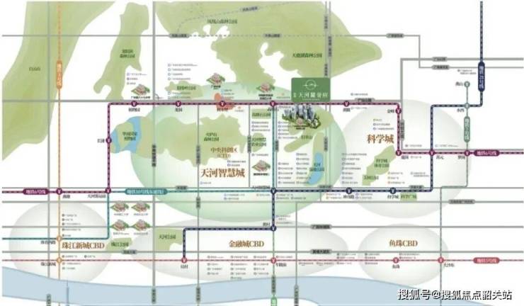 项目位于广州市天河智慧城核心区,紧邻广深港、广珠澳科技创新走廊双线交汇地段,是广州中央科创区(CTD)的重点板块。项目周边汇聚国家级高新技术产业园、国家软件产业基地及多个国字号产业项目,共有约2000家科技企业、1000家高新技术企业及34家总部型企业入驻,包括网易、酷狗、UC等知名企业,以及极飞科技、赛意信息等独角兽公司。该区被定位为广州高科技创新轴核心,未来发展潜力巨大。项目周边还毗邻珠江新城、科学城等城市重点区域,居住与工作兼顾,兼具产业、商务和生活便利。地理位置优势不仅体现在产业资源,还包括城市景观和环境优势,南向三面环山,紧邻自然山景,兼具都市便利与生态环境,为业主提供难得的城市“松弛感”生活体验。
