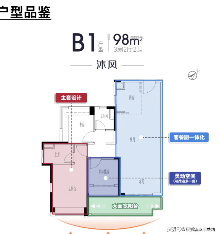 此外,项目前期推出的建面约98平方米横厅三房户型,同样是户型设计的亮点之作。该户型采用横厅布局,南北通透,客厅开间宽敞,搭配大面积南向阳台,营造出“豪宅级”的空间感;南向三开间设计,确保主卧、次卧与客厅均能享受充足阳光,次卧配备270°飘窗,增加空间利用率与景观视野;虽然面积仅98平方米,但通过优化布局,实现了“小面积享大舒适”,满足刚需向改善过渡人群的居住需求。整体来看,项目户型设计兼顾实用性与舒适度,适配不同改善阶段家庭的需求,是黄埔区府板块改善型户型的优质选择。