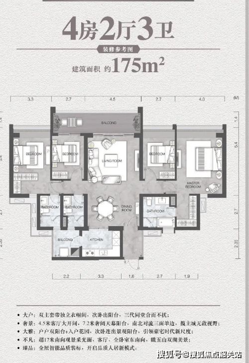 豪华装修与智能人居:采用国际品牌豪华交标,打造智能化健康人居典范,以超前的设计理念和高品质的装修标准,为业主提供舒适、便捷、智能的豪宅生活体验,引领未来豪宅生活潮流。