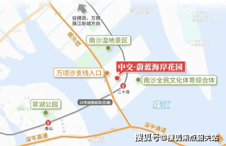 中交·蔚蓝海岸花园位于南沙万顷沙二十涌板块,紧邻深中通道南沙线收费站,驱车自驾仅需半小时即可到达深圳前海。同时,距离在建的18号线南延线(南中城际)二十涌站约500米,未来将成为大湾区名副其实的交通枢纽,实现地铁半小时内畅达广州、深圳、中山、珠海。