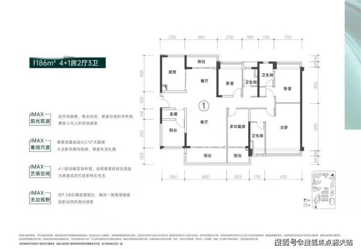 建面约143㎡的主力户型让我印象很深:私属入户花园+4.2米南北对流的餐客厅,再连上7米景观阳台,整个公共区域通透又敞亮。厨房是半开放式U型布局,洗切炒动线合理,周末在家做饭也不会觉得局促。三房朝南,主卧带独立衣帽区,细节上考虑到了真实居住习惯,而不是一味堆面积。