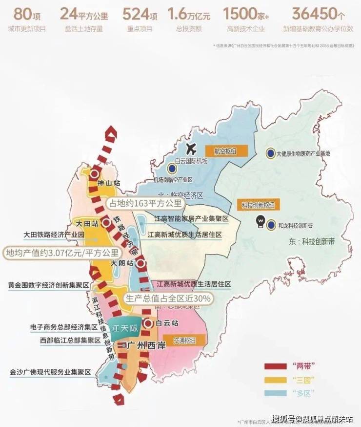 项目位于白云新城西岸 与珠江西岸核心发展带紧密衔接 依托华为广州研发中心与周边数字经济产业集群 形成强大的发展推动力 该区域被列入广州十四五规划重点战略板块 未来将形成高技术 高产值 高密度的智慧产业高地 与此相辅的是四横八纵主干道网络以及三条地铁线路的立体出行结构 包括十三号线 十二号线及佛山八号线 项目位于黄金围大道与白云一线交汇口 地处交通枢纽 同时坐享区域升值红利