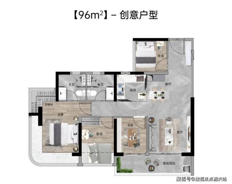 能建·天河麓誉府的户型设计灵动且实用,通过创新的空间设计实现了超100%的超高使用率。例如,约92㎡户型的约5.7米景观阳台、主卧270°弧形观景窗;约100㎡户型的约5.9米多功能宽厅等,都充分考虑了家庭不同生活场景的需求。此外,半山园林与立体景观体系的设计,让业主在家中即可享受静谧与开阔视野。