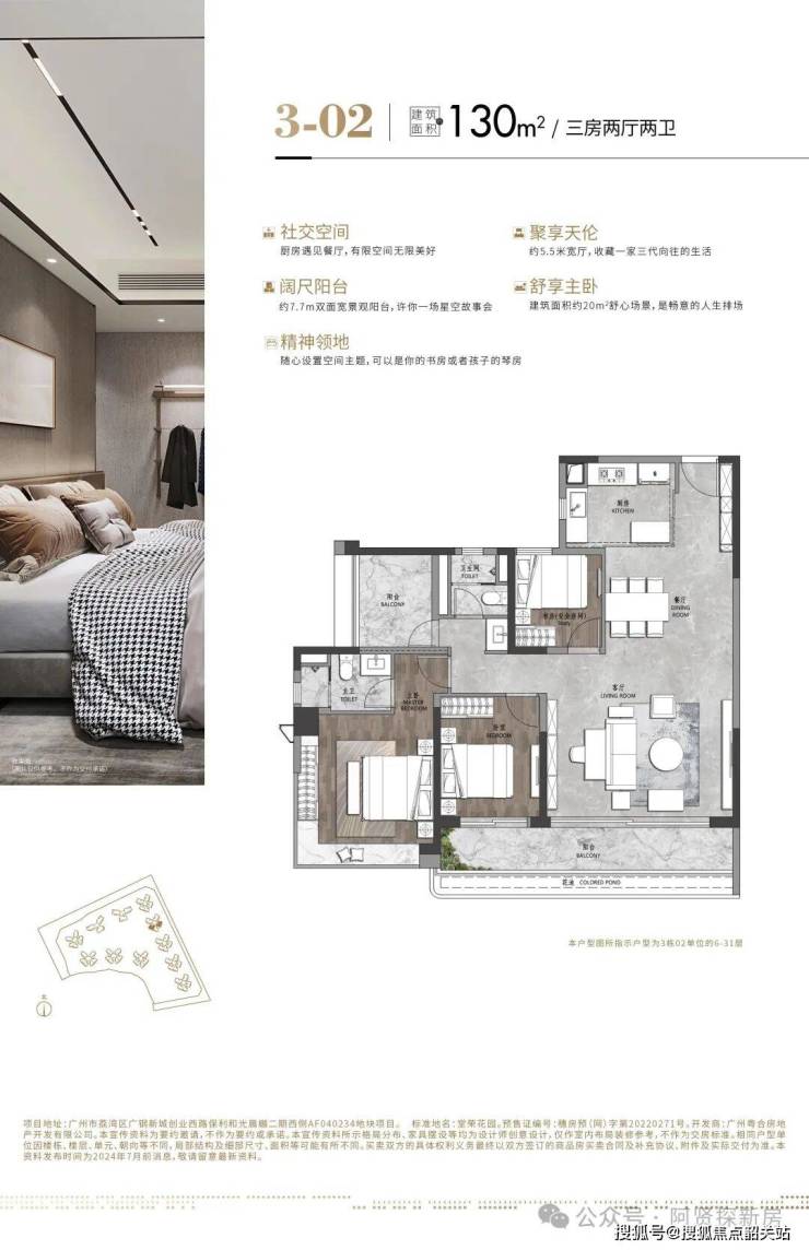 本宣传资料仅为项目信息公示用途,不构成《商品房买卖合同》的要约或承诺。宣传内容中涉及的项目规划、周边配套、政府规划、商业资源、教育资源、交通配套、户型面积等相关信息,最终均以政府相关部门审批文件及项目实际交付情况为准;