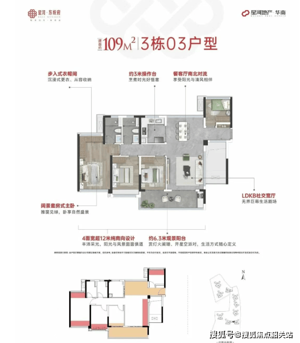户型设计是星河东悦府的一大亮点,项目主打建面约89-138㎡的全四房及4+1房产品,被誉为“超新规爆盘”。其中,约89㎡的户型堪称神作,通过创新的空间布局和高得房率设计,实现了四房两厅两卫的功能配置,且能做到双厅南北对流,四开间朝南,这在同面积段产品中极为罕见。约106㎡至122㎡的户型则配备了6.3米至6.7米的超大阳台,进一步拓展了生活空间,提升了居住舒适度。约138㎡的双主套4+1房户型,更是采用了南北对流和五房设计,满足了多代同堂家庭的多样化需求。所有户型均采用全景舱视野设计,采光面宽,视野开阔,让阳光和风景成为生活的日常。这种对空间的极致利用和对居住需求的深刻理解,体现了星河控股深厚的产品研发功底。