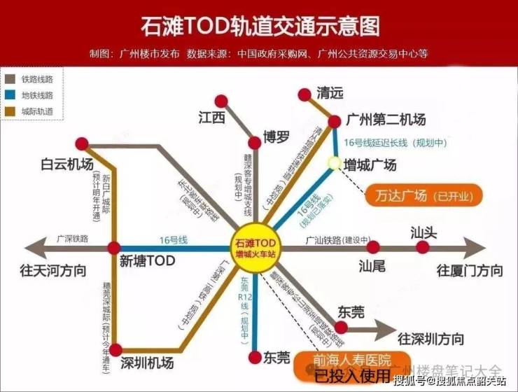 Q3:项目距离地铁站有多远?未来是否有地铁规划? A:项目距离地铁16号线石滩站约200米,属于真正的地铁上盖物业。同时距离广州新东站(增城站综合交通枢纽)约4公里,规划建设中。
