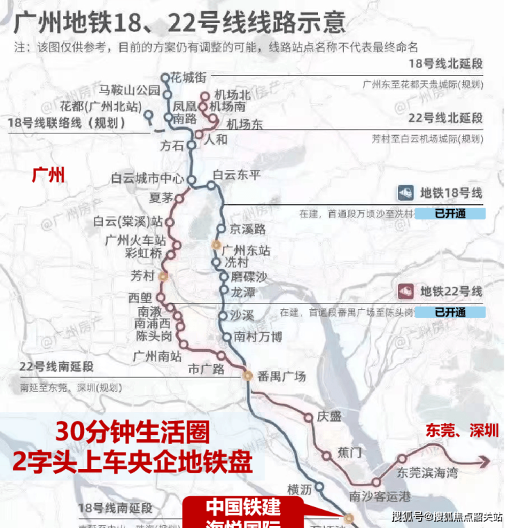 18号线地铁快线,4站30分钟直达天河,与地铁22号线无缝衔接,33分钟到广州南站;