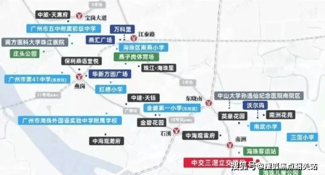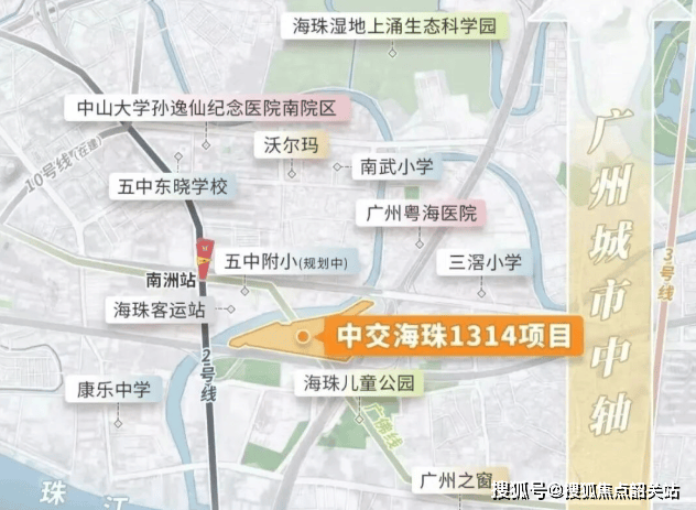 海珠西板块不仅地理位置优越,而且周边配套设施齐全。北瞰广州塔,南望珠江水,居于公园之中,兼具江景、城景及园景,是真正的宜居之地。项目距离地铁2号线和广佛线交汇的南洲站仅约500米,自驾出行则可通过广州绕城高速和广州大道,交通便利。