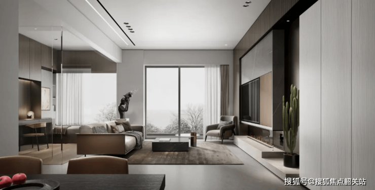 建面约92m²户型,拥有最高约5.8米的层高,可以为一家人打造出多维生活空间。纯板式结构,让小户型也拥有大平层级别的无遮挡天际视野。