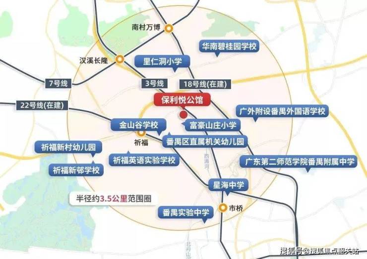 项目坐落于广州南部的番禺区,紧邻正在快速发展的万博商务区。随着城市中轴线不断向南延伸,万博片区未来将逐步成长为智慧城市的核心区,区内交通网络日趋完善,发展潜力显著。交通方面,悦公馆周边构建了“五横五纵”的路网结构,出门即能快速接入新光快速路,约十分钟可抵达万博中心商务区,琶洲及珠江新城分别约需25至30分钟车程,交通便利性较强。轨道交通配备丰富,邻近地铁3号线汉溪长隆站和22号线祈福站,距离均约800米,附近番禺广场站可换乘18号线,覆盖天河及海珠主要区域,便于上班族及生活出行。尽管如此,项目距离地铁站仍有一定步行距离,部分住户需借助公交接驳,通勤时间相对稍长,需购房者合理规划日常出行。